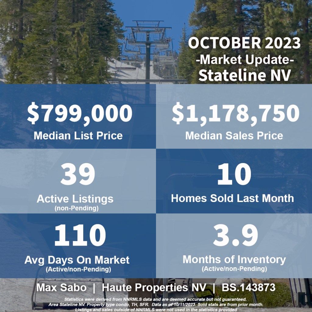 Hi, I’m Max Sabo, your Stateline Nevada real estate agent. This is the real estate market update for October, 2023, covering the sales from September, 2023.