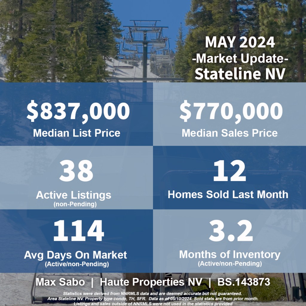 Hi, I’m Max Sabo, your Stateline Nevada real estate agent, and this is the Real Estate Housing Market Update for May 2024 covering the sales from April 2024.